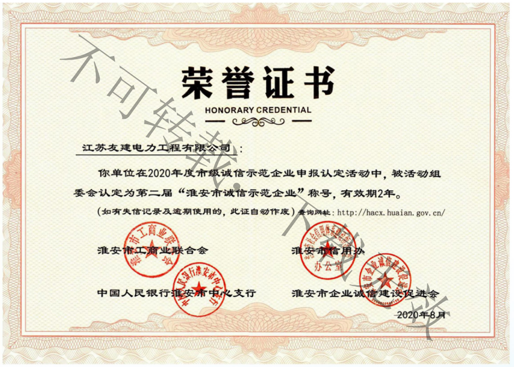 江蘇友建電力工程有限公司連續十余年被淮安市供電公司評選為合格入庫單位。目前承接著國網淮安供電公司核心區高低壓運維搶修、淮安市區以及生態文旅區路燈變壓器維護、淮安市第一人民醫院高壓設備設施維護;承接過江蘇省核心機房變電所高低壓配電值班、淮陰師范學院10KV配電系統調試保養、韓泰集團110KV變壓所搶修試驗等業務,業主綜合評價優良。公司以嚴密的組織機構、嚴謹的管理理念、嚴格的質保體系,圓滿完成澳洋順昌35KV配電安裝工程、西游記龍宮大白鯨嬉水世界及漕埠商業中心10KV配電工程、上海國際花園受電工程、連云港新海科技創業城二期20KV配電工程、淮安悅榮府項目配電工程、碧桂園陽光湖畔小區居配工程.......